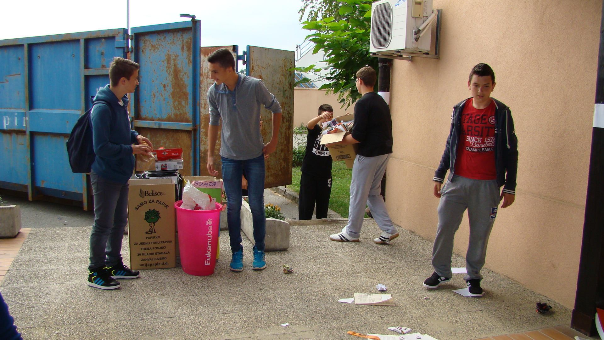 Dana 24.9.2015. (četvrtak) uspješno je provedena akcija prikupljanja starog papira. Rezultate i fotografije pogedajte ovdje: Pomoćnici s voditeljicom projekta, pedagoginjom Rosom Kontejner je stigao baš na vrijeme. Pomogli su i oni koji nisu bili baš prikladno odjeveni za akciju prikupljanja. Javljanje uživo - iz kontejnera. Angažirale su se sve djelatnosti u našoj školi. Jedni rade, a drugi računaju koliko je papira prikupljeno. HVALA SVIMA!